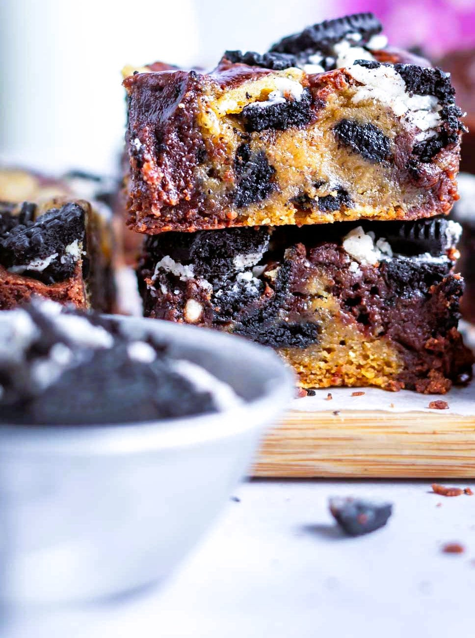 Indulge in the divine harmony of flavors with our famous Brookie Bars. Picture this: a luscious layer of gooey caramel nestled between a decadent brownie, chocolate chip cookies and oreos. But wait, there's more! We've sprinkled a generous amount of crunchy pecans and walnuts on top to add that perfect texture. Each bite is a symphony of sweetness and richness, a true delight for your taste buds. Satisfy your cravings and experience bliss in every bite with our irresistible Brookie Bars.